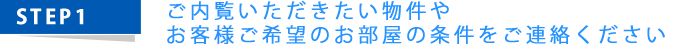 まずは、お問合せフォームより、お客様お探しのお部屋の条件、